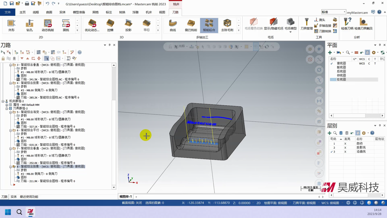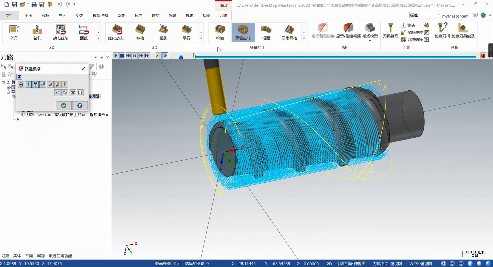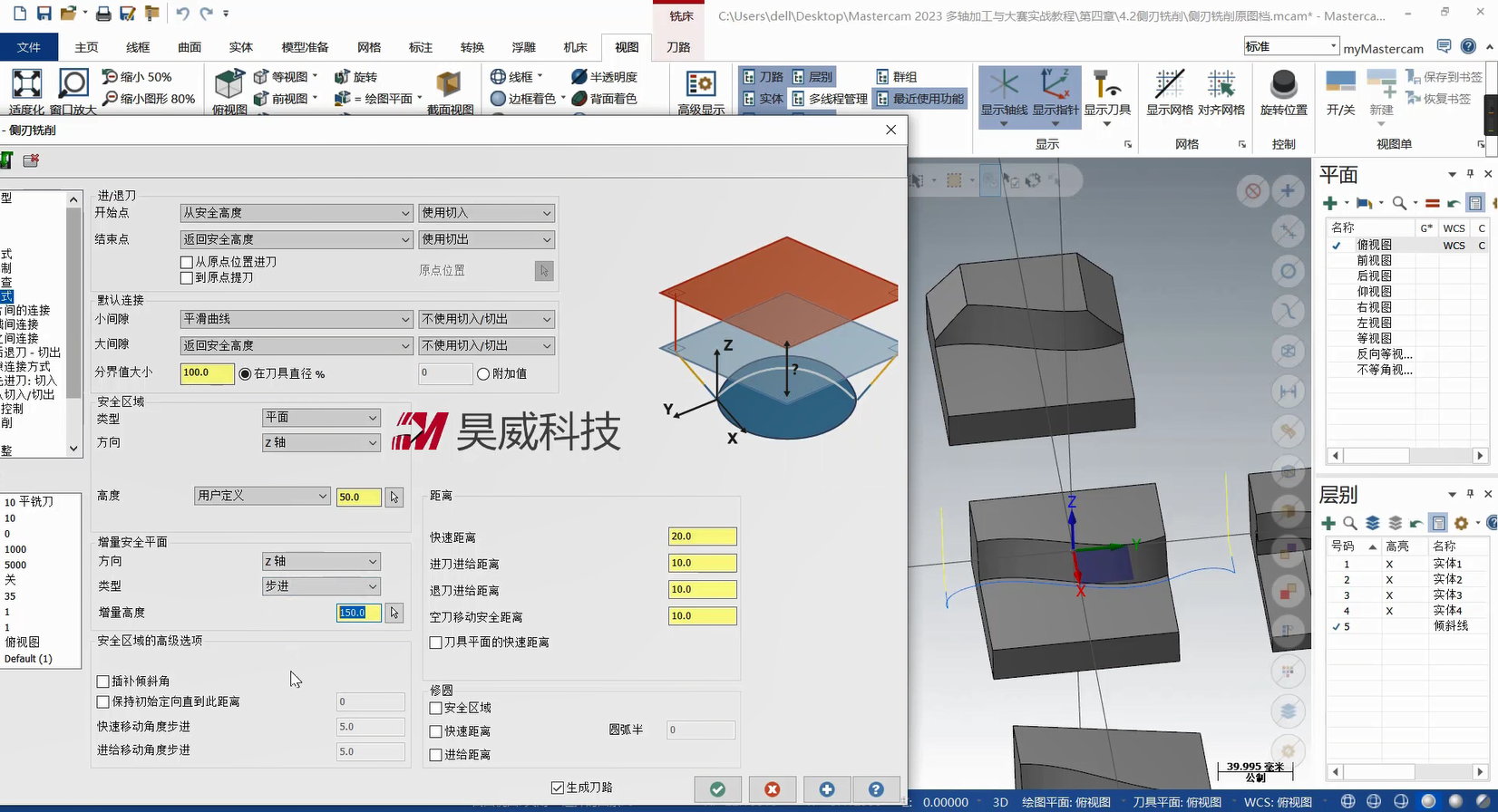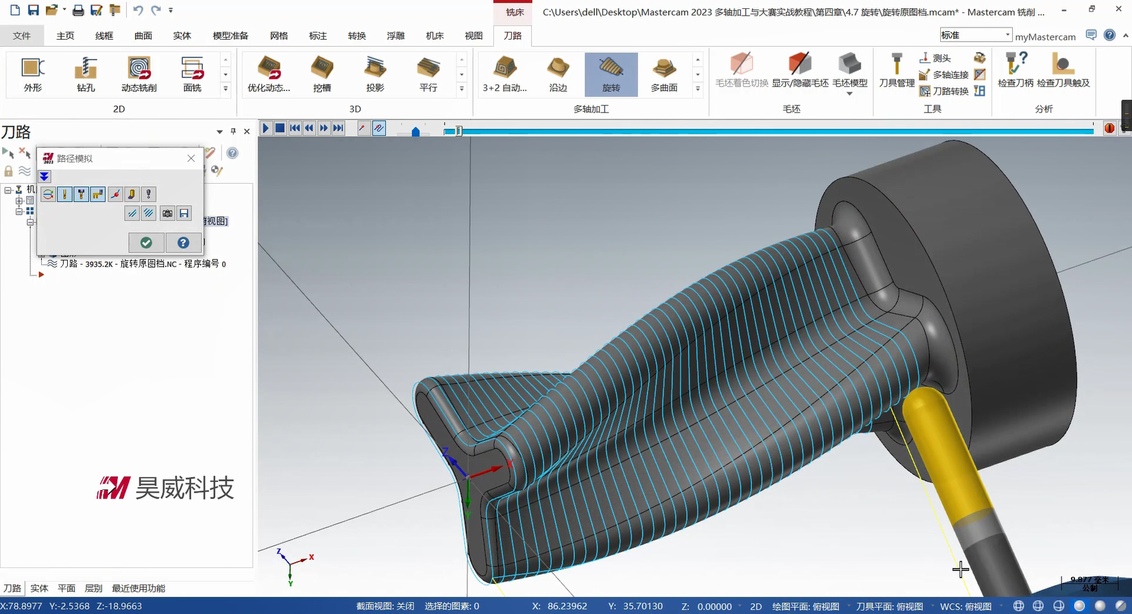 本章构建多轴联动编程的策略体系,从基础到高级功能层层递进。基础部分详解曲线策略、侧刃铣削的参数设定与刀路优化,涵盖切入切出设置、分层加工等拓展应用,提升常规零件加工效率。高级策略部分重点讲解智能综合策略的驱动模式与碰撞控制、沿面策略及多曲面策略的刀轴投影补正,满足曲面刻字、去毛刺等特殊需求。此外,课程针对挖槽加工细分粗切、侧壁与底面精加工策略,结合进给速率控制与刀轴调整提升加工质量;旋转策略部分则覆盖切削方式设定、安全区域设置等核心技术。针对叶轮加工场景,专门解析叶片专家策略中轮毂、圆角及叶片部位的精修技术,并为大家讲解通道专家策略的使用方法,适配航空航天等领域复杂零件加工。