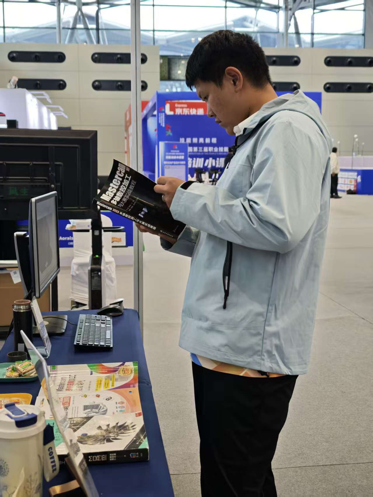 在大赛配套的展演环节中,我们重点展示了 Mastercam 2026 在智能编程、多轴加工与操作体验方面的显著升级,并结合 AI 智能编程进行现场演示。同时,也系统介绍了昊威科技围绕软件构建的配套公开发行的教材书籍、标准课程与在线教学资源,完整呈现“技术+资源”双轮驱动的服务模式,吸引众多师生驻足展位交流。